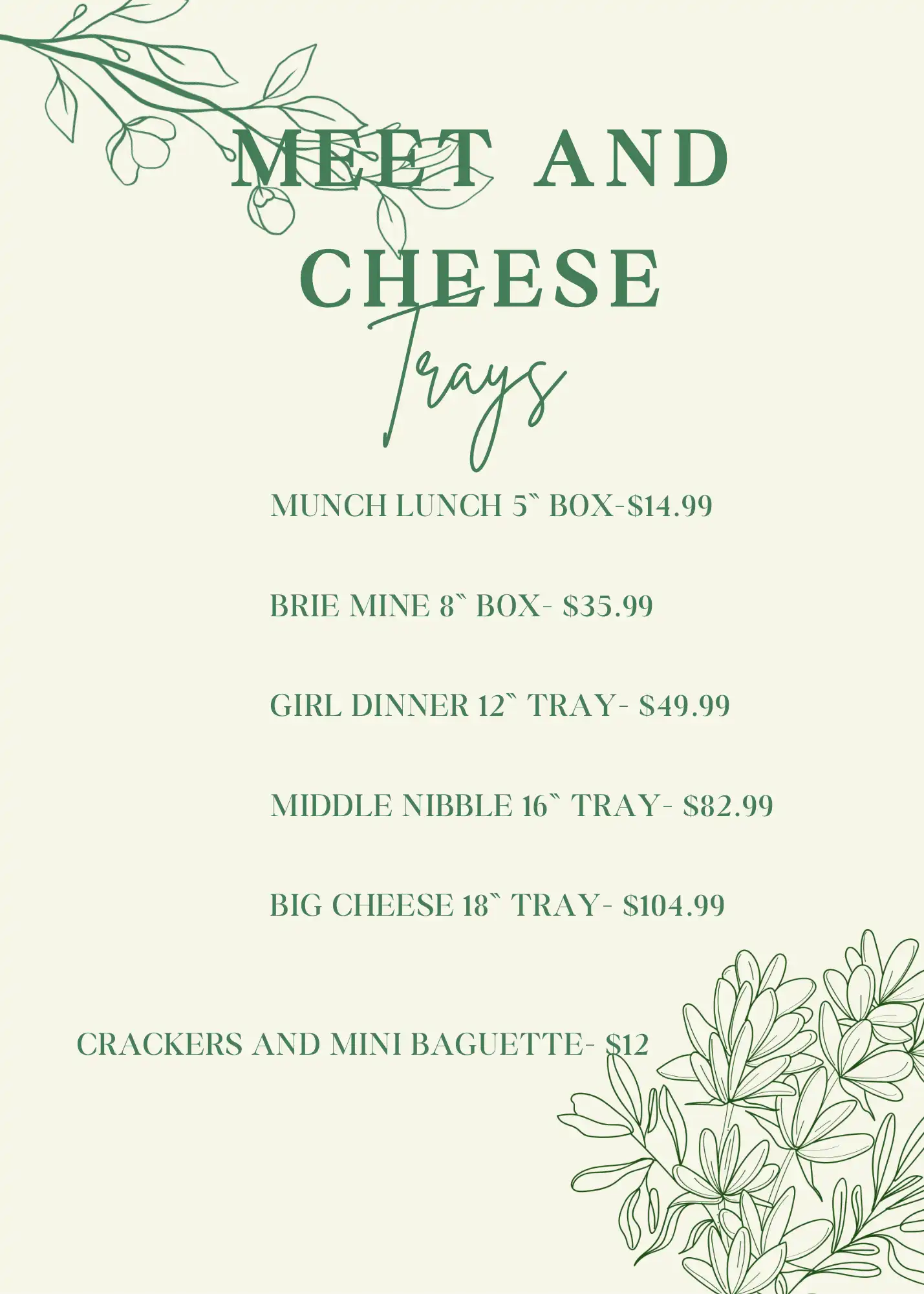 Meet & Cheese, established in 2022, is a special event catering and charcuterie company based out of the South Hills of Pennsylvania. We started as a small charcuterie board company and have expanded to a full grazing catering company and mobile cart. We have an extensive gift guide, a long menu for charcuterie boards of multiple sizes and catering for up to 100s of guests. We strive to add a high end, personal touch to every single order.